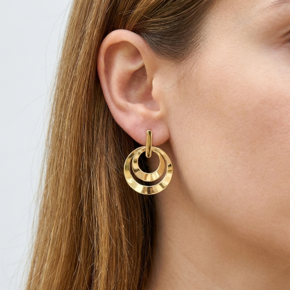 Boucles d'oreilles pendantes Argent 925 doré Cercles - Ref : 58225