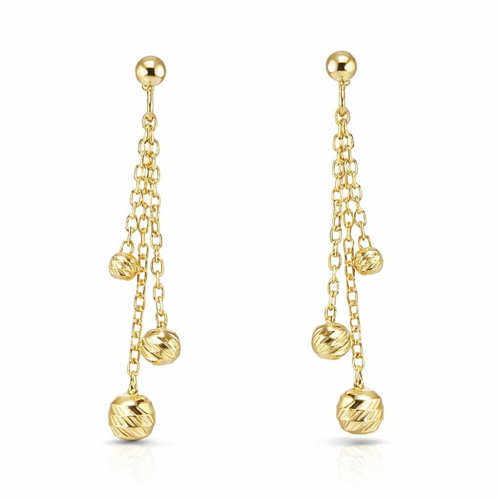 Boucles d'oreilles pendantes Argent 925 doré 3 chaînettes boules ciselées - Ref : 58214