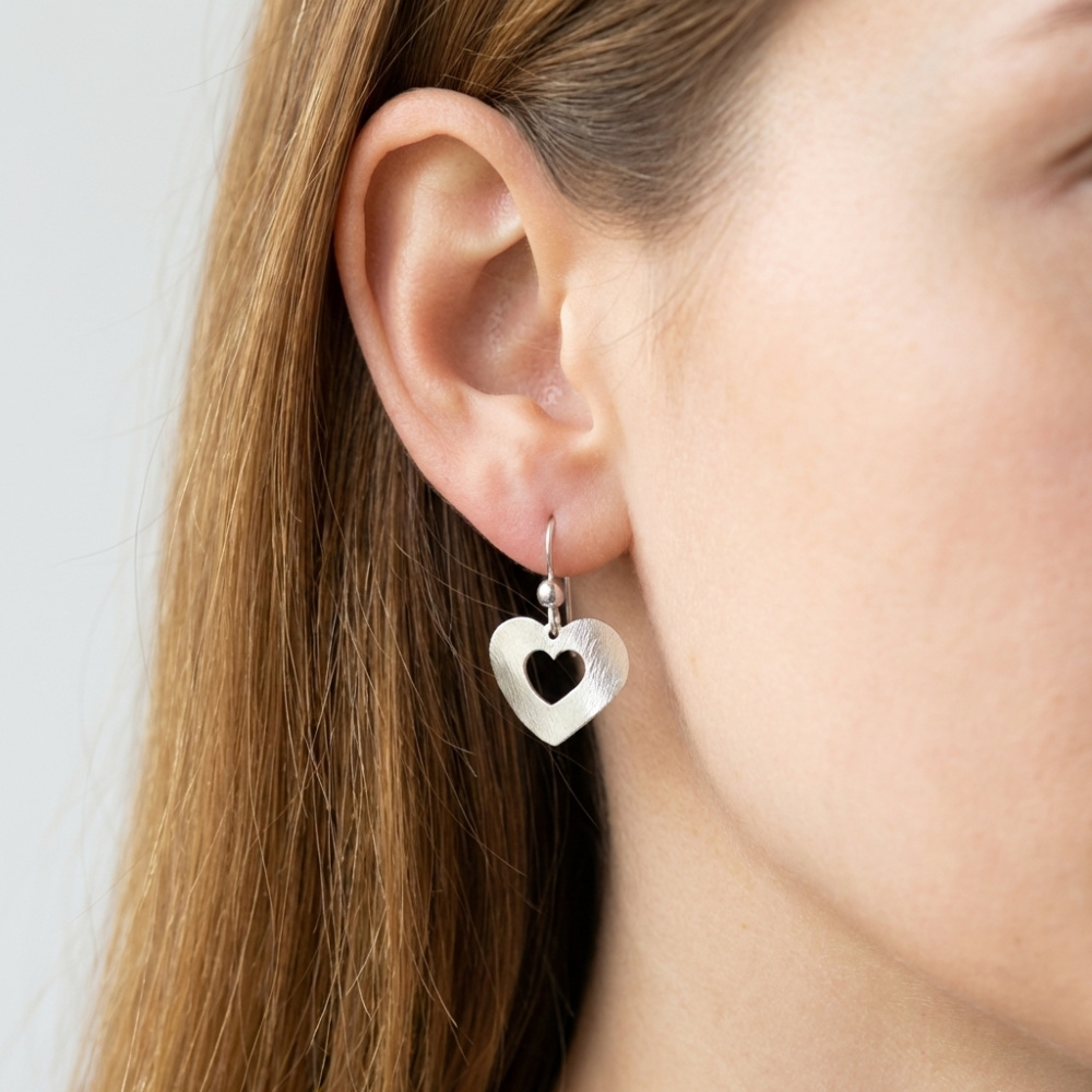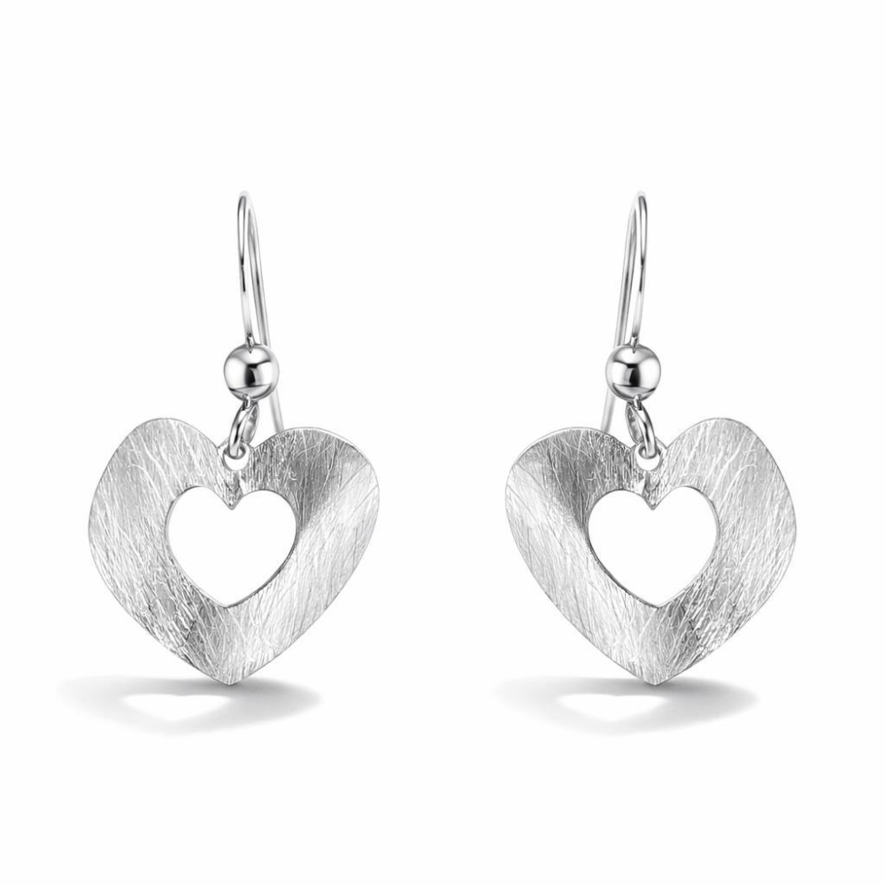 Boucles d'oreilles pendantes Argent 925 rhodié Coeur brossé - Ref : 58191