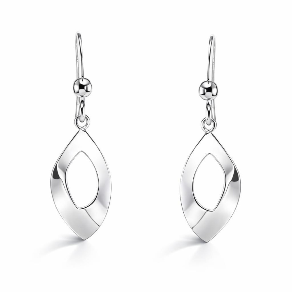 Boucles d'oreilles pendantes en argent 925 rhodié composées d'une goutte ondulée de 10x20mm