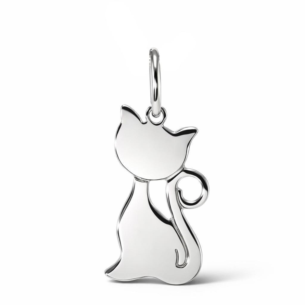 Ce pendentif en argent 925 rhodié présente une silhouette féline élégamment stylisée.