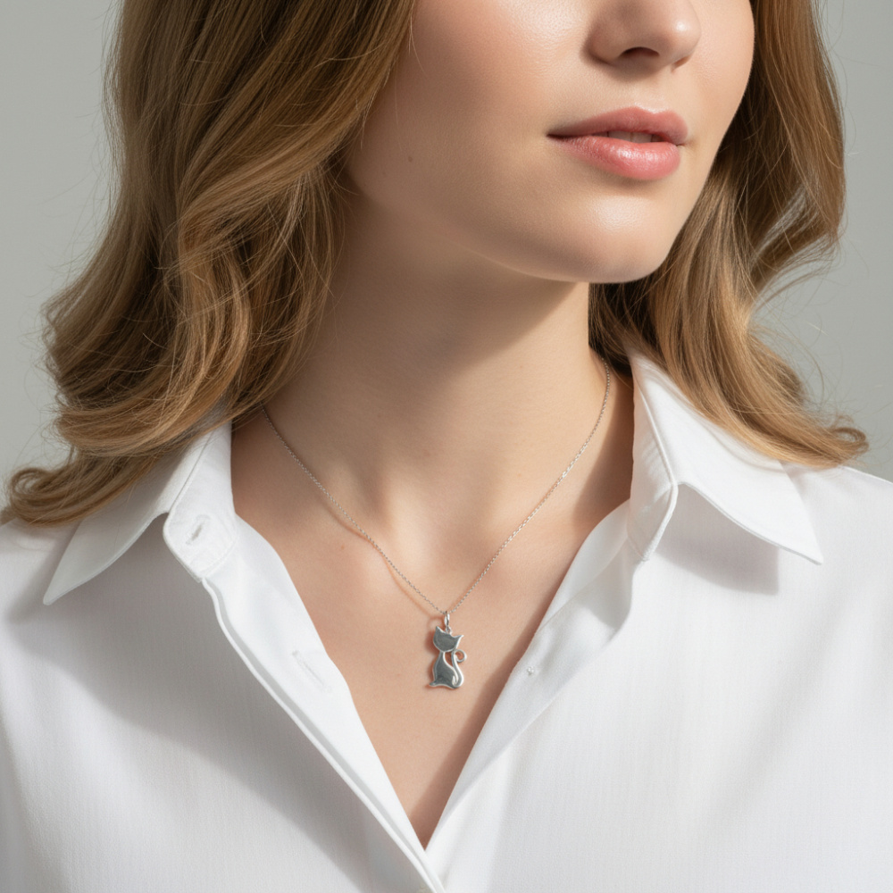 Sa forme épurée et ses courbes délicates capturent l'essence gracieuse du chat, créant un bijou à la fois simple et raffiné.