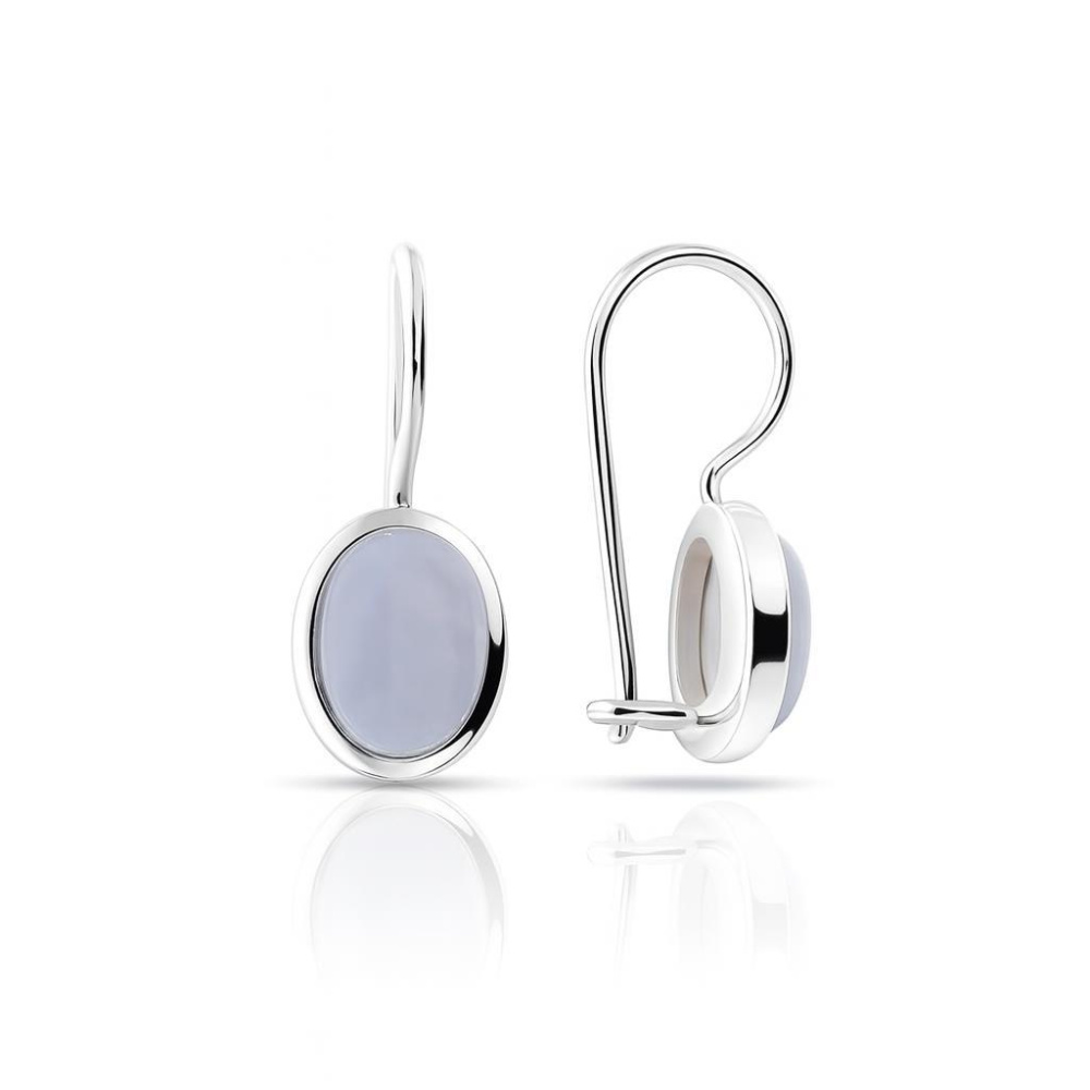 Boucles d'oreilles Argent 925 Calcédoine serties de pierre de 7x5mm, hauteur totale : 19mm