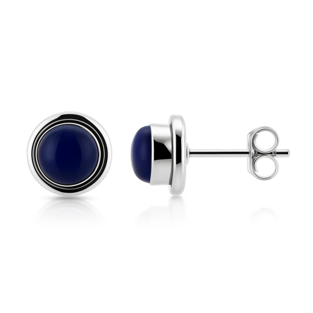 Complétez vos tenues par ces élégantes boucles d'oreilles. Des lapis lazuli taillés en cabochon les agrémentent avec délicatesse, ils sont de forme ronde et maintenus en serti clos. En effet, la monture est constituée par un mince corps qui entoure les côtés de la pierre avec une bordure ronde à la base. Ces boucles à la forme puces d'oreilles sont pourvues de poussette pour servir de fermoir. La tonalité claire de leur monture en argent est rehaussée par la puissante couleur du lapis lazuli.
