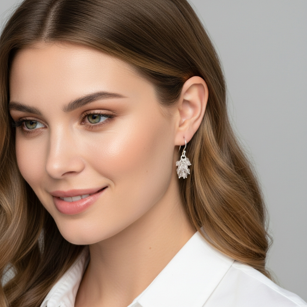 Boucles d'oreilles pendantes en forme de grappes avec de petites pierres rondes