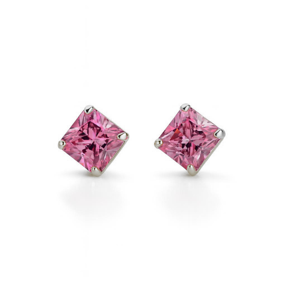 Boucles d'oreilles Argent 925 Oxyde de Zirconium Rose serties de pierres carrées de 5mm, chaton 4 griffes